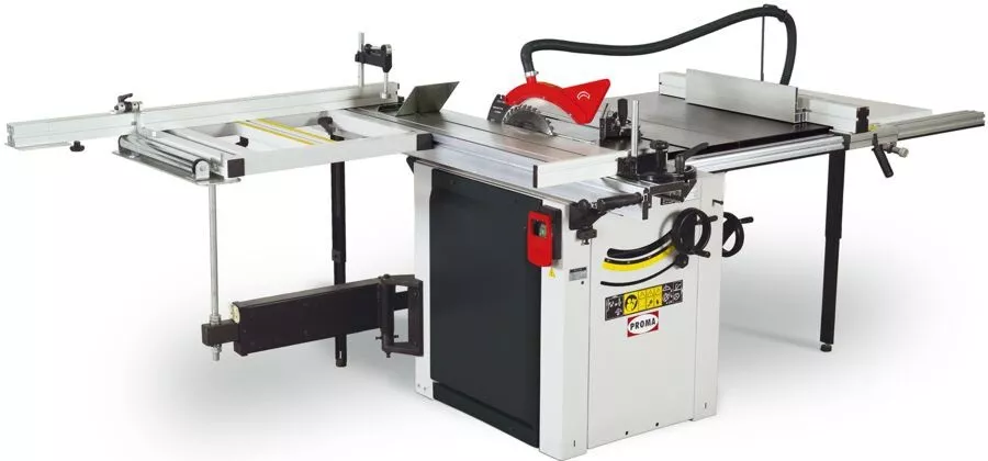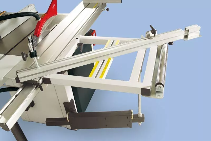 - Možnost nastavení hloubky prořezu a úhluVýhodou pily je její velký pracovní stůl s pojezdem a její robustnost