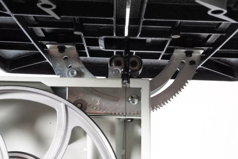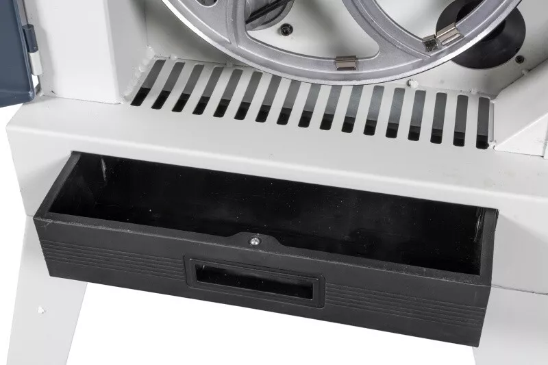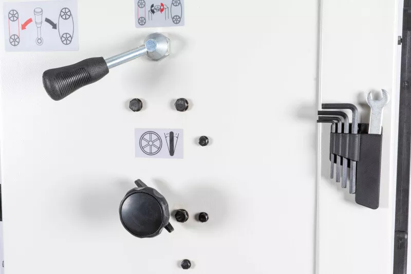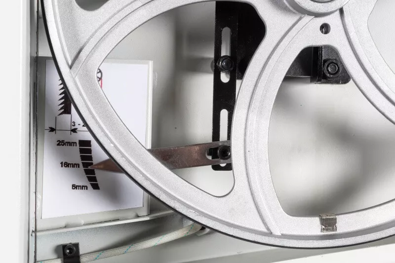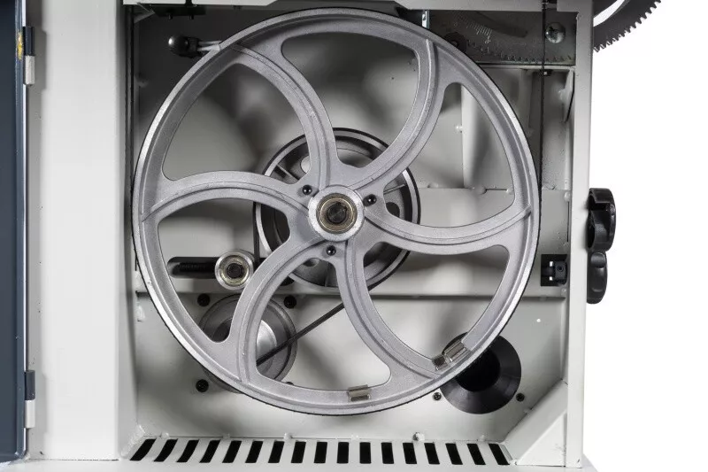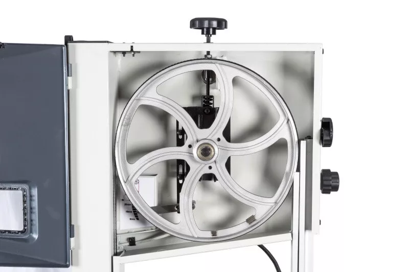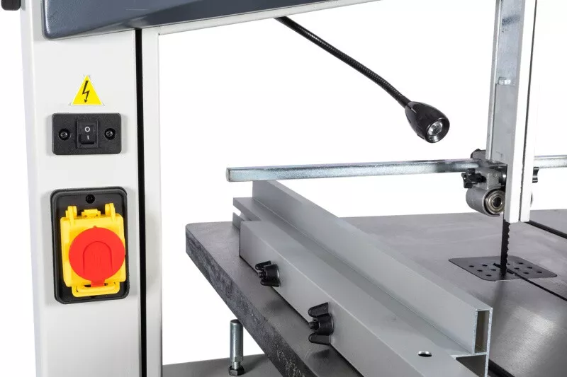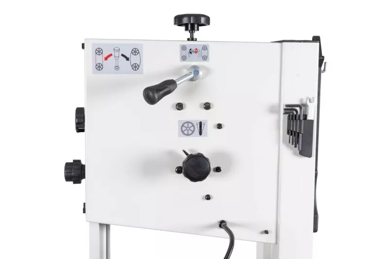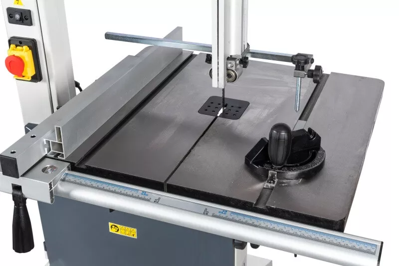 - Velké vyložení rámu a značná výška řezu Tuhá svařovaná a stabilní konstrukce z ocelového plechu Stůl pily z šedé litiny dává tomuto typu, téměř profesionální tuhost Přesný náklon stolu díky ozubení Přesné horní i spodní vedení pilového pásu Pásovice z tlakově litého hliníku s napečenou gumovou vrstvou pro dlouhou životnost pilových listů Nastavení náklonu horní pásovice Vstup pro výměnu pásu lze provést bez nářadí (kryty jsou vybaveny koncovými vypínači) Rychlá výměna pilového pásu za pomocí excentru horního kola Orientační ukazatel optimálního napnutí pásu Dvourychlostní provedení (dvoustupňové řemenice) Vývod na odsávání Vodící držáky s kuličkovými ložisky LED pracovní osvětlení Zásuvka pro sběr pilin V základním vybavení je také přípravek na vyřezávání kruhů Součástí je seřizovací nářadí a přípravek na posun materiálu Včetně pilového pásu a podstavce
