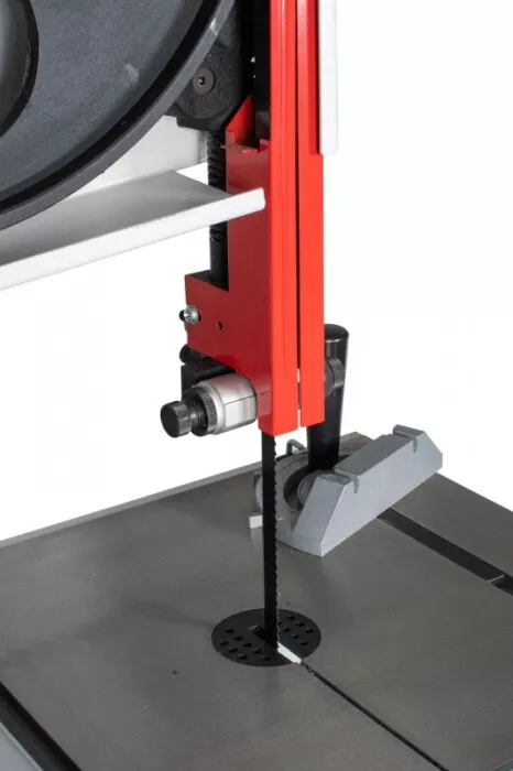 - Cenově výhodná pásová pila na kov s optimálním řezným výkonem je díky snadné obsluze, hydraulickému a chladicímu zařízení vhodná i pro náročnější kutily, kteří nepotřebují oboustranné úhlování ramena. Rychlost plynulého klesání ramene pily lze korigovat za pomocí ventilu na hydraulickém válci, který lze i snadno odstranit. Řeznou rychlost pilového pásu lze manuálně nastavit na požadovanou polohu klínového řemene na řemenici, která pak následně přenáší pohyb přes šnekovou převodovku v olejové lázni na pásovici s pilovým pásem. Chladící systém je zabudovaný ve stabilním mobilním podstavci. Volba rychlosti padání ramene, k tomu optimální řezná rychlost a chlazeníkapalinou v místě řezu, prodlužují životnost pilového pásu až na trojnásobek. Koncový vypínač zastavuje pilový pás po ukončení řezu u tohoto modelu automaticky. Řez pod úhlem 0-45° se provádí nastavením pevné čelisti svěrákudle stupnice umístěné na základně. Součásti dodávky pásové pily na kov PPK-115HC/230:• Pilový pás