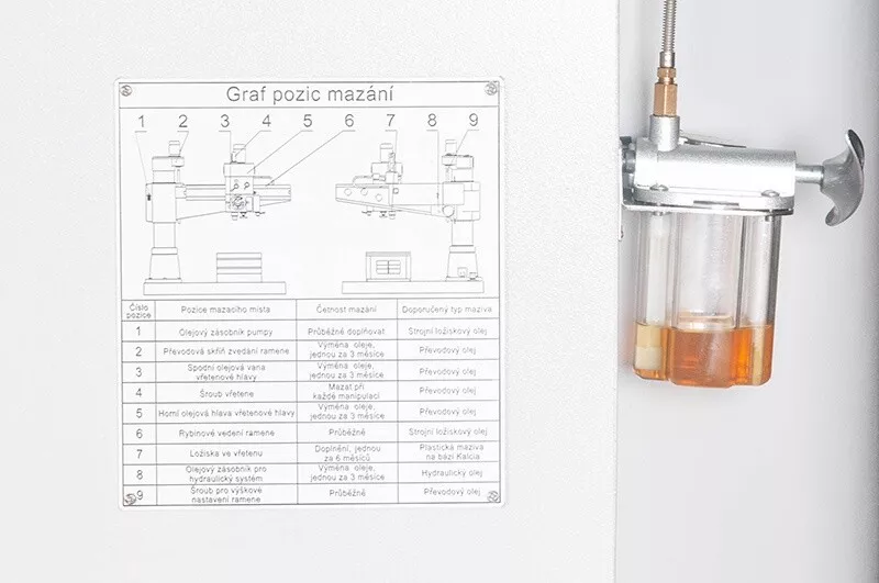 - tuhá a masivní konstrukce velký rozsah posuvů vřetena řazení za pomocí hydrauliky manuální řazení vybaveno frekvenčním měničem Schneider otáčky vřetena jsou znázorněny na displeji manuální řazení systém trochoidního tenkovrstvého mazání aretace pomocí hydraulického systému ve všech osách tlačítko chlazení a hlavní elektrický panel je vpravo od vřetena vybaveno koncovými dorazy vřetena aretace pomocí hydraulickému systému ve všech osách dodáváno včetně upínací kostky