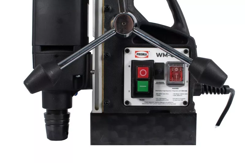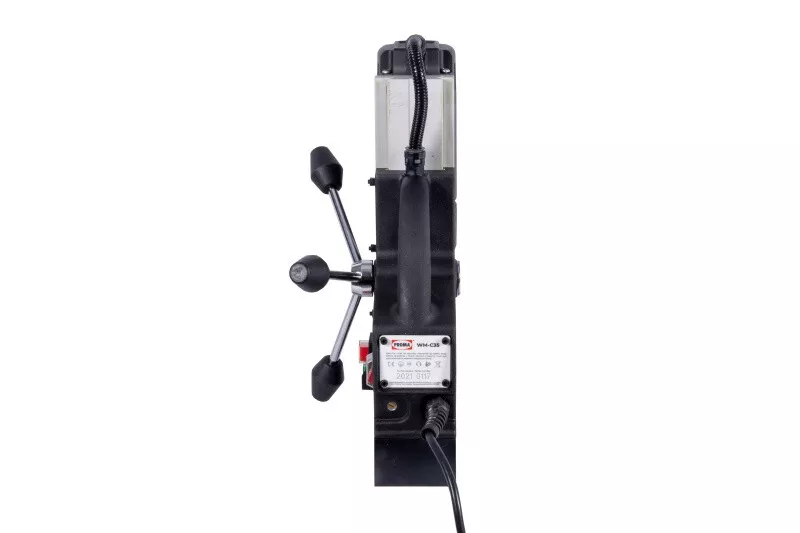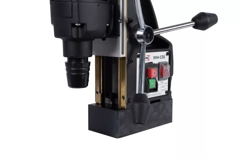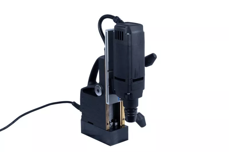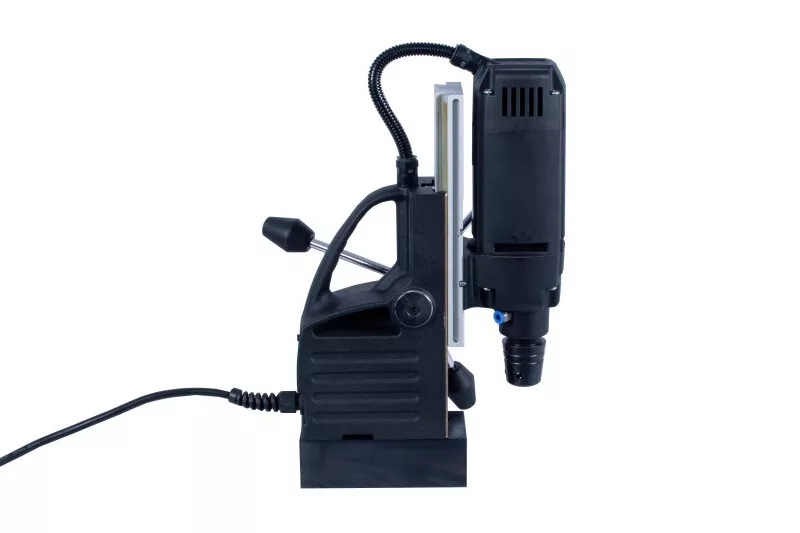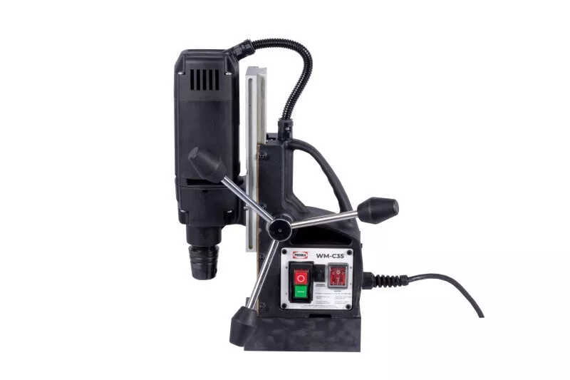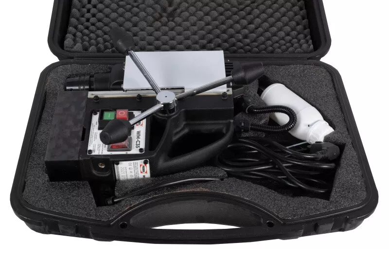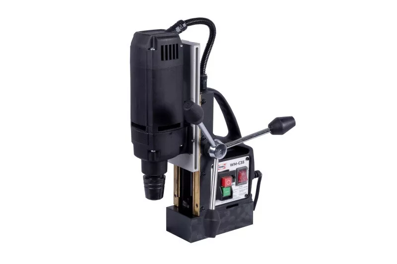 - Vrtačka o výkonu 1050W s nízkou hmotností a kompraktním tvarem umožňuje pomocí jednoduché manipulace vrtat díry do ocele až do průměru 35mm. Vrtačka je speciálně konstruovaná pro vrtání železných materiálů pomocí magnetické základny, která slouží k přidržování vrtačky na místě vrtání (součástí stroje je také zajišťovací popruh).