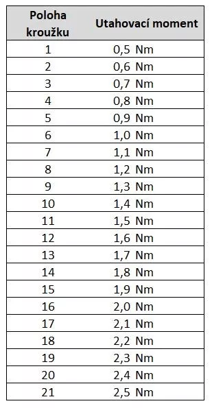 - Utahovací moment: 0,5Nm - 2,5Nm.