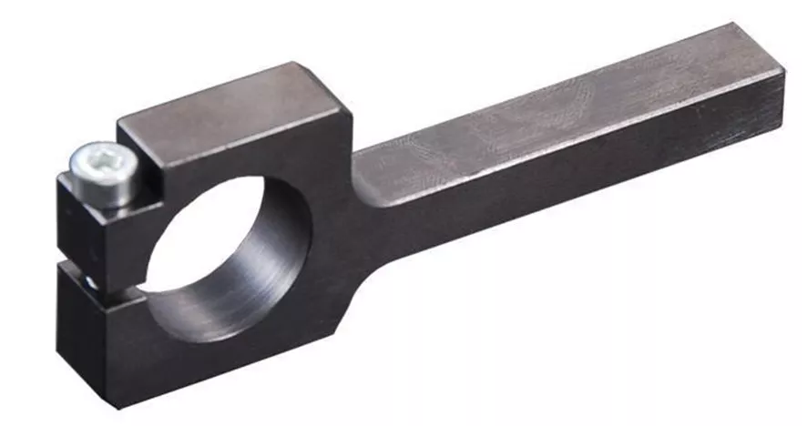 - Ocelový držák je vhodný k přesnému a pevnému upnutí např. vrtací brusky LBS/E nebo IBS/E do soustruhu při úpravě obroků do oblých tvarů.