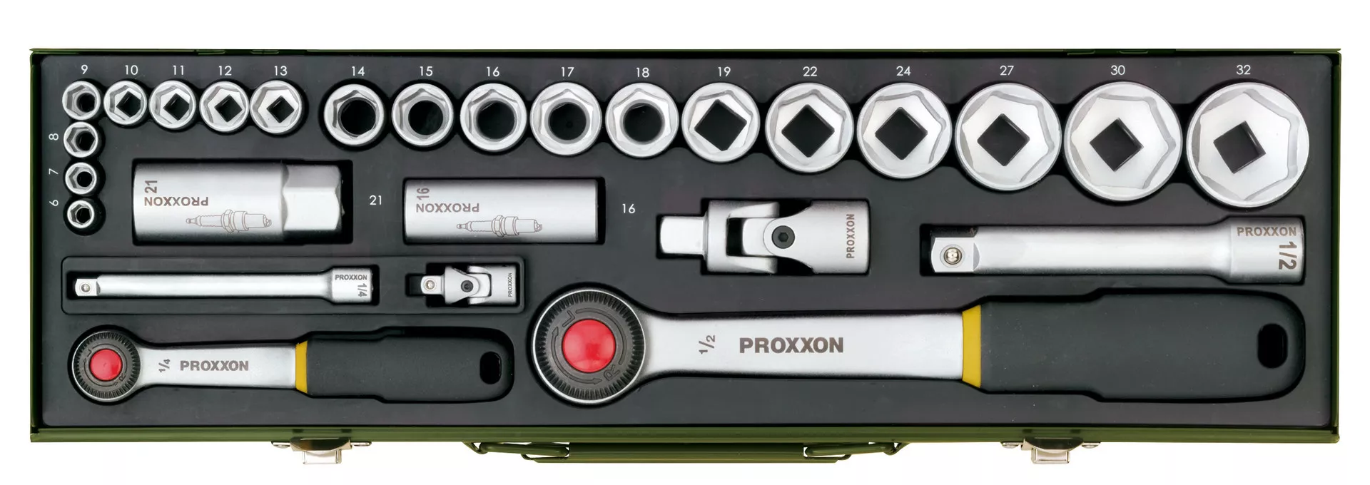 Proxxon Gola sada s 1/4" a 1/2" ráčnou – 27 dílů