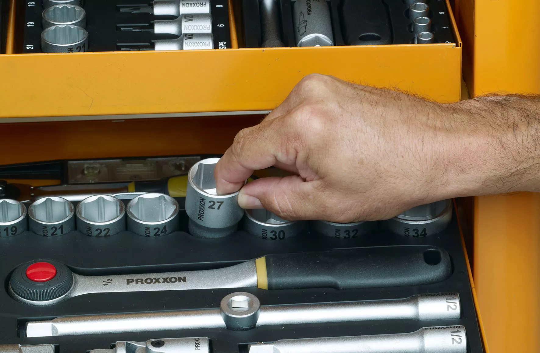 - Každý díl snadno naleznete díky dobře čitelným označením jednotlivých velikostí nástavců.