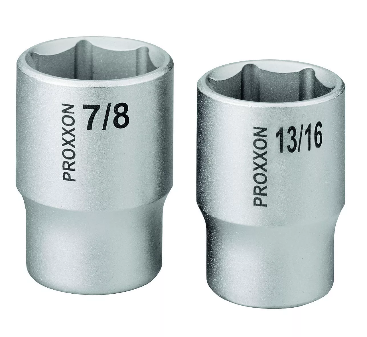 - Díky přesným hlavicím Proxxon je kroutící moment přenášen na boky hlav šroubu a matice, nikoliv na jejich hrany, nedochází k jejich poškození i přes vyvíjení velké síly.