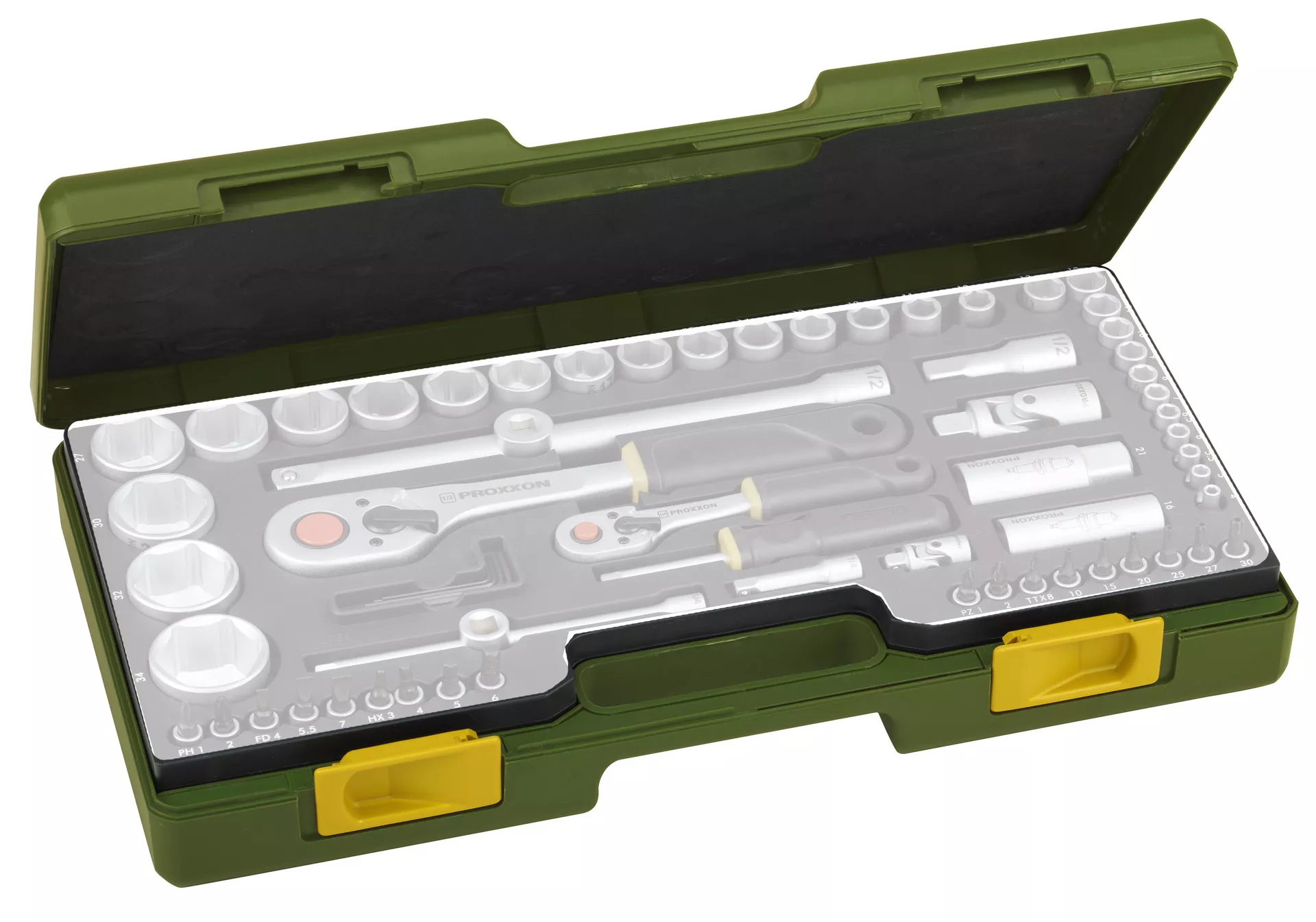 - Vložka je dále uložena v pevném, kompaktním plastovém a uzavíratelném kufříku.Nejvyšší kvalita Proxxon, převyšuje požadavky DIN/ISO na tvrdost a maximální kroutící moment.