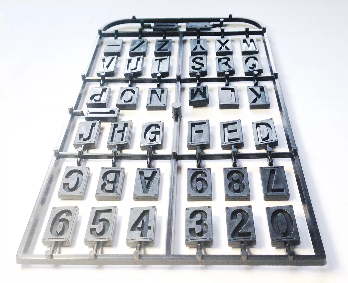- Součástí balení jsou 2 sady písmen od A do Z (vč. pomlčky, tečky, lomítka a číslice 0-9 (dohromady 78 kusů), po jednom kuse imbusový klíč vel.: 1,5 – 3 – 5 mm a jeden šroubovák Imbus s kulatou hlavou 2,5 mm.