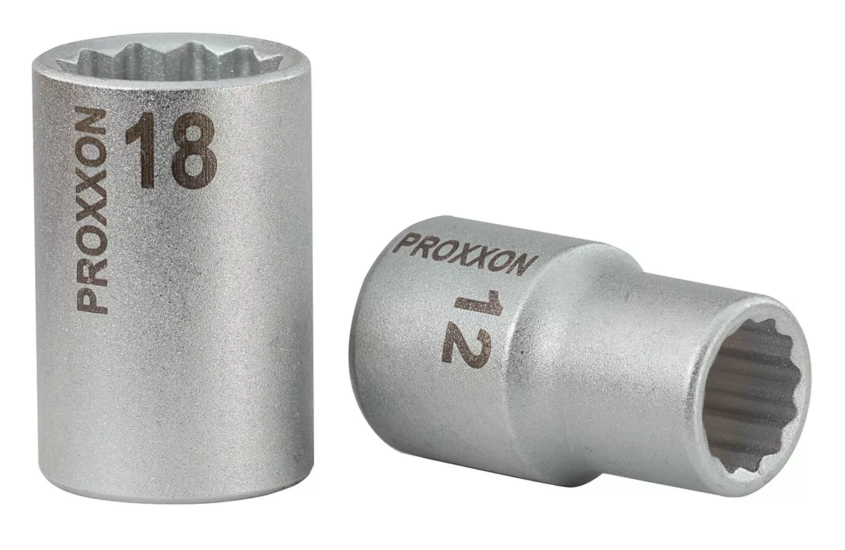 - Díky přesným hlavicím Proxxon je kroutící moment přenášen na boky hlav šroubu a matice, nikoliv na jejich hrany, nedochází k jejich poškození i přes vyvíjení velké síly.