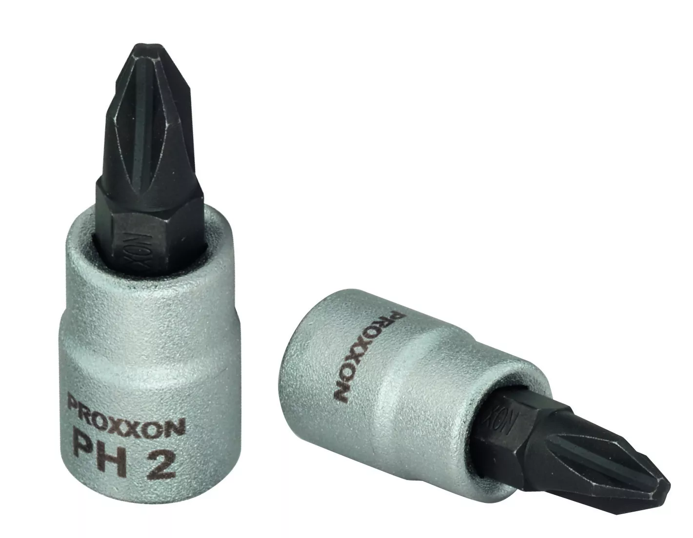 - Materiálové provedení bitů odpovídá průmyslové kvalitě; jsou rozměrově přesné a odolné proti opotřebení. Samotné tělo hlavice je dvakrát niklované a jednou matně chromované; velikost bitu je na hlavici označen laserem, nikoliv ražením nebo nekvalitními popisky.Nejvyšší kvalita Proxxon, převyšuje požadavky DIN/ISO na tvrdost a maximální kroutící moment.