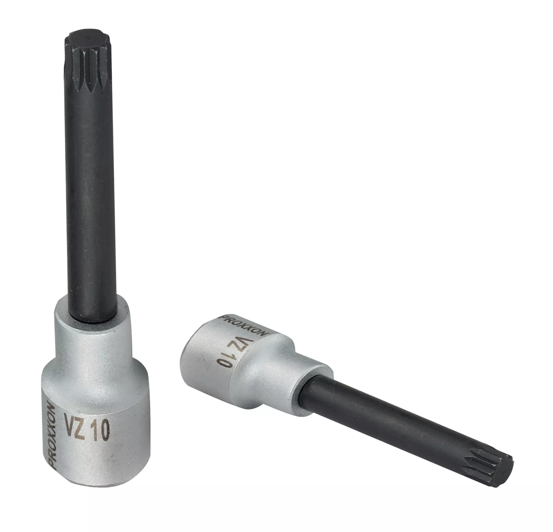 - Materiálové provedení bitů odpovídá průmyslové kvalitě; jsou rozměrově přesné a odolné proti opotřebení. Samotné tělo hlavice je dvakrát niklované a jednou matně chromované; velikost bitu je na hlavici označen laserem, nikoliv ražením nebo nekvalitními popisky.Nejvyšší kvalita Proxxon, převyšuje požadavky DIN/ISO na tvrdost a maximální kroutící moment.