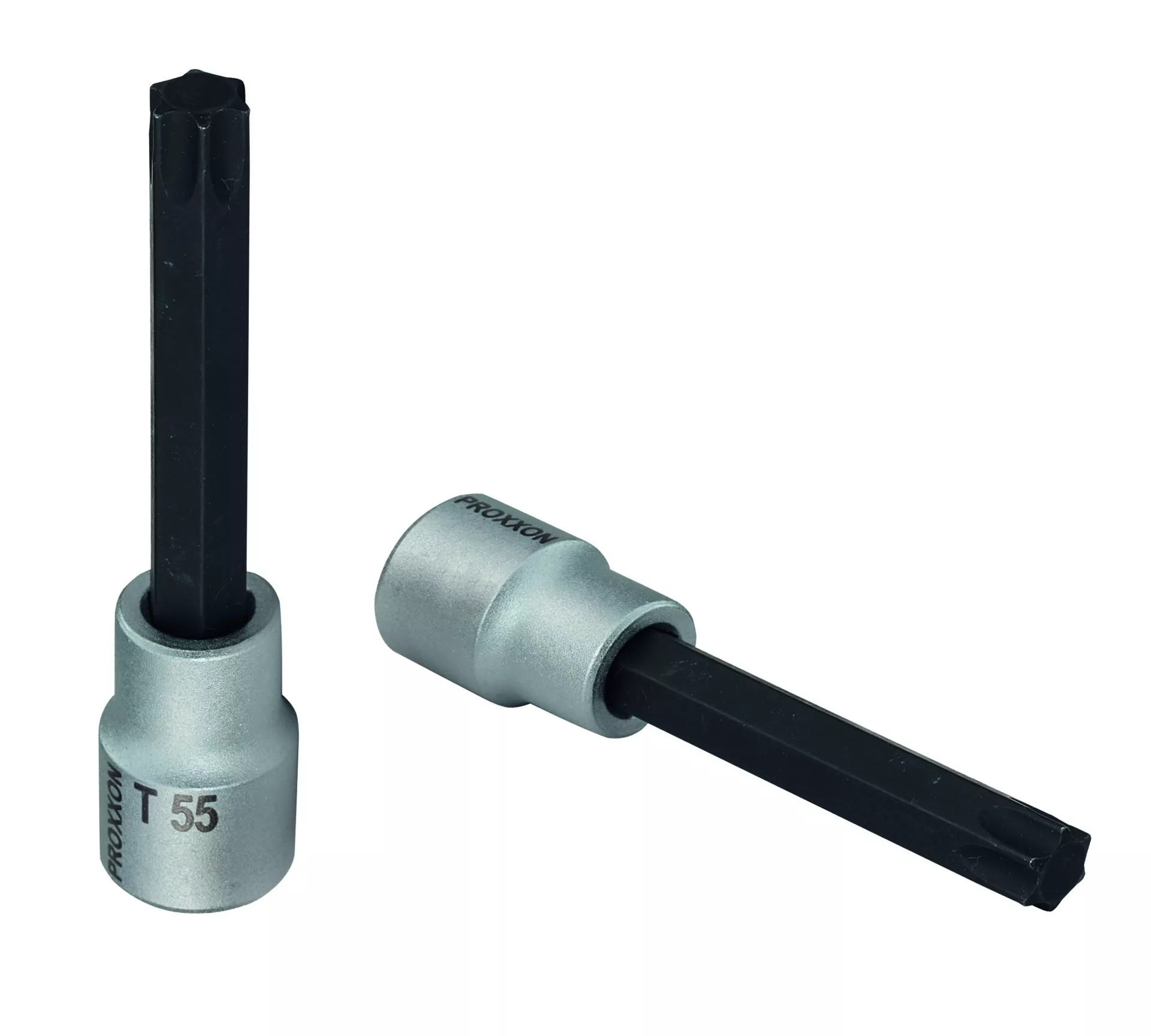 - Materiálové provedení bitů odpovídá průmyslové kvalitě; jsou rozměrově přesné a odolné proti opotřebení. Samotné tělo hlavice je dvakrát niklované a jednou matně chromované; velikost bitu je na hlavici označen laserem, nikoliv ražením nebo nekvalitními popisky.Nejvyšší kvalita Proxxon, převyšuje požadavky DIN/ISO na tvrdost a maximální kroutící moment.
