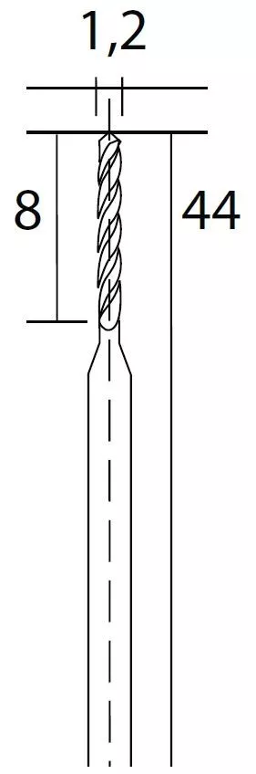 - Stopka Ø 2,35mm.Vhodné pro kovy, plasty, tištěné destičky spojů a dřevo.
