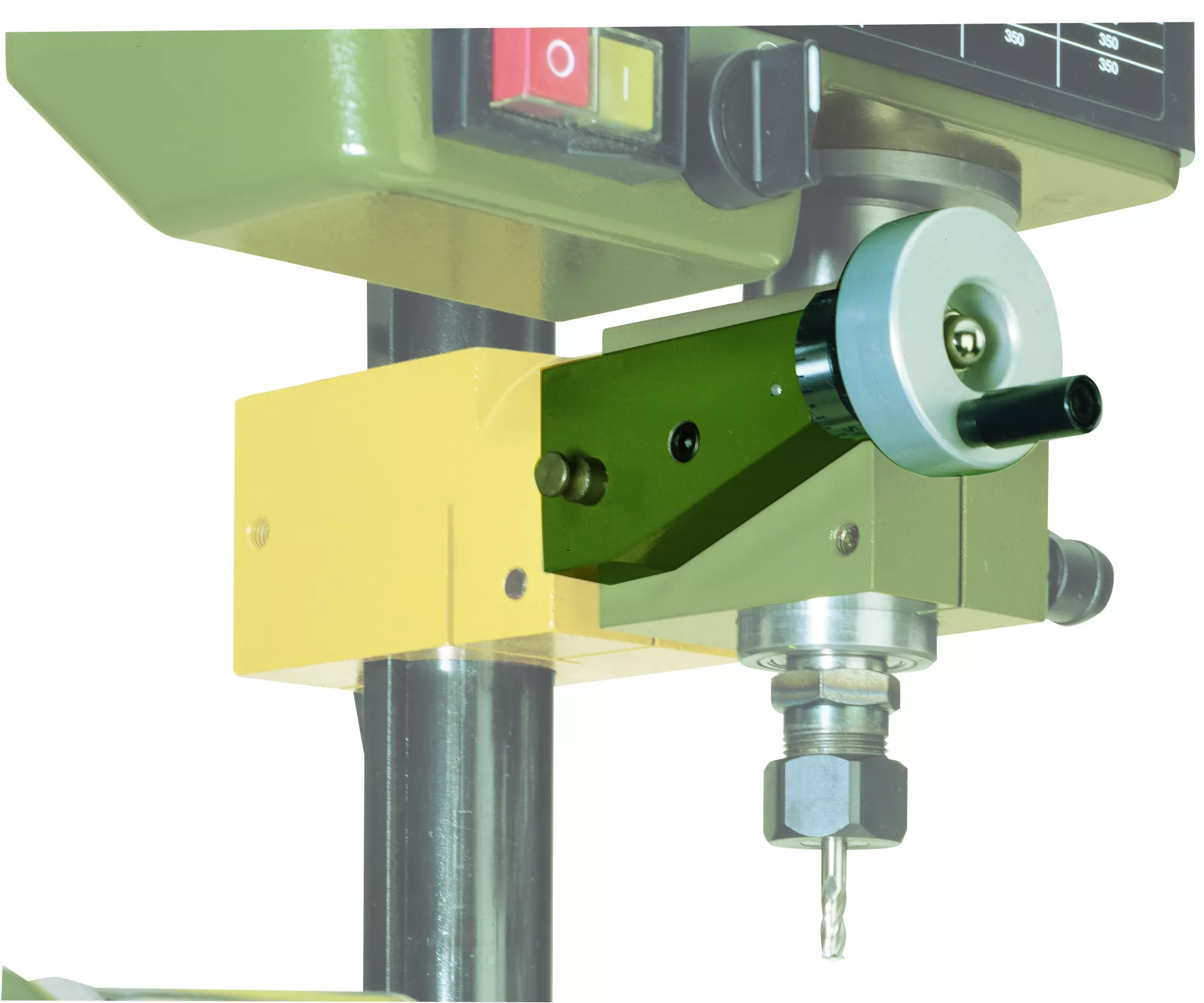 - Tento posuv vám tak umožní posuv nástroje otáčením regulačního kolečka nebo pomocího stávajícího pákového mechanismu (není nutné jemný posuv demontovat).