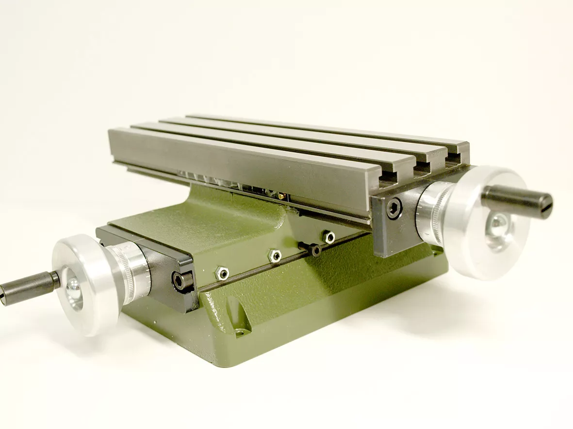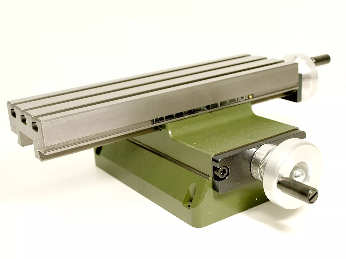 - Křížový stůl o velikosti 270x80mm se třemi průchozími T-drážkami (MICROMOT norma 12 x 6 x 5mm).