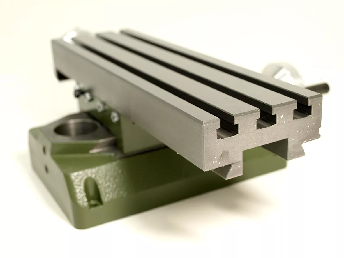 - Stabilní podstavec křížového stolu KT 230 je vyroben z šedé litiny s možností připevnění k desce.