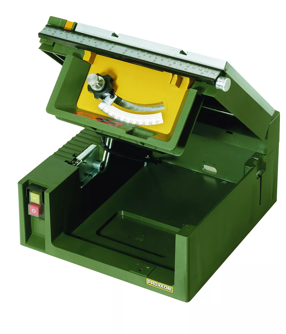 - Pro řezání velmi malých dílů.Úhlové pravítko s posuvným hliníkovým dorazem s koncovým posuvným dílem pro sériovou výrobu.Stůl s pohonnou jednotkou lze zvednout a zajistit jako kapotu auta.