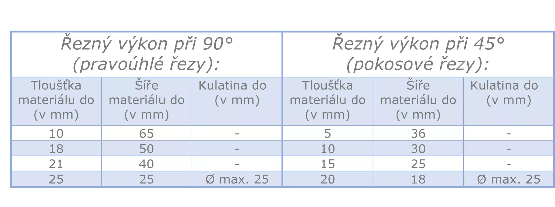 - Možnost řezání obrobků ze dřeva, barevných kovů a plastů.