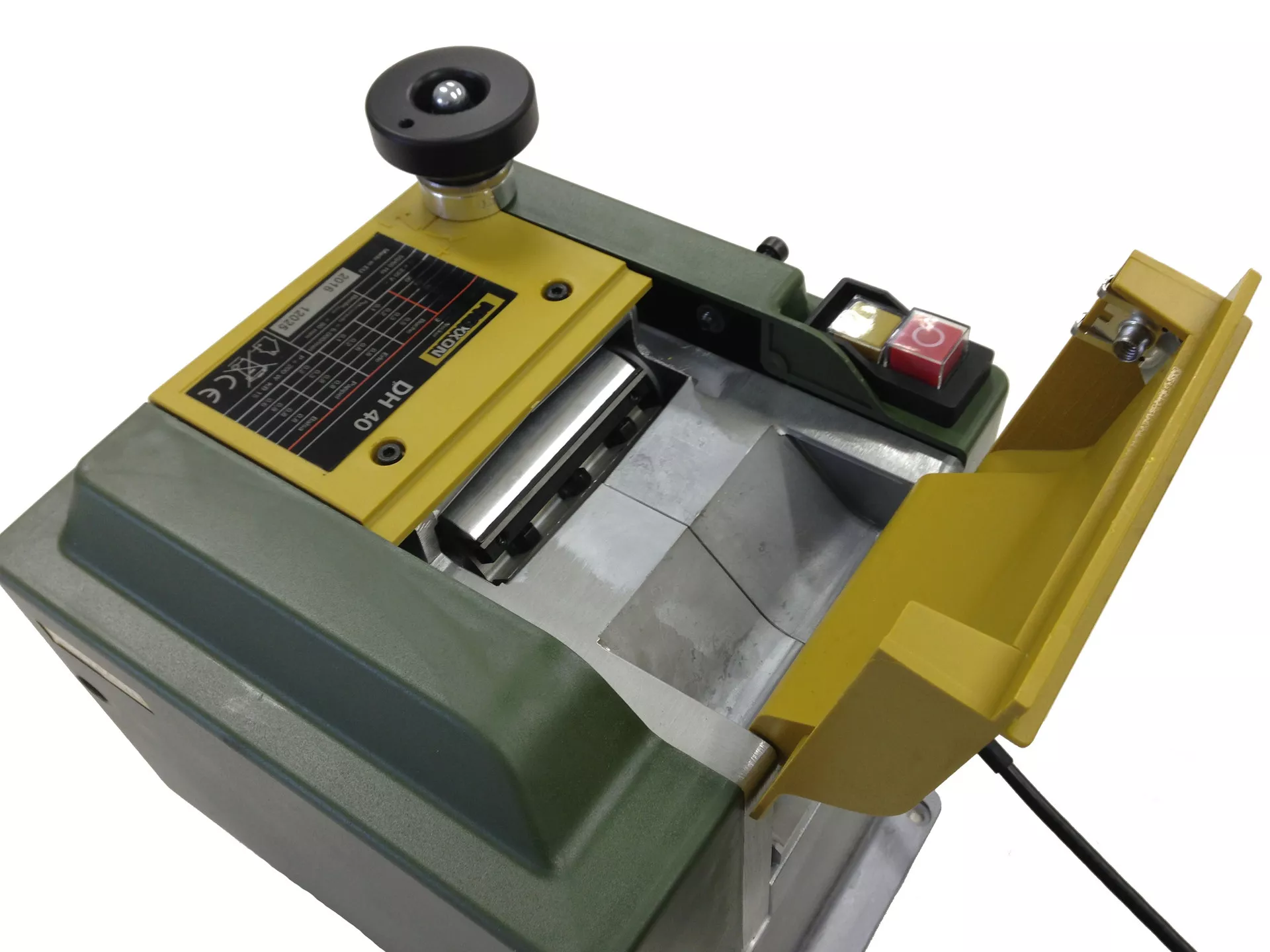 - Precizní hřídel se dvěma snadno vyměnitelnými tvrdokovovými noži.Horní část lze odklopit pro snadné vyčištění od pilin a výměnu nožů.