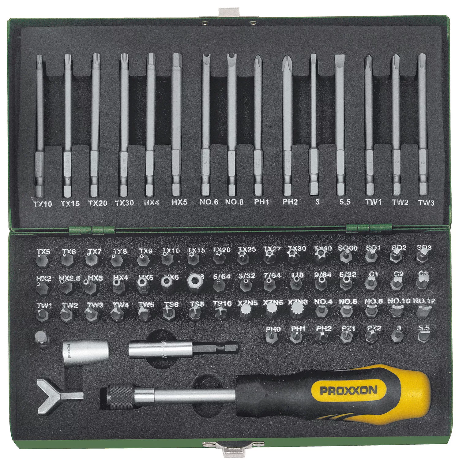Proxxon Sada bitů a hlavic s ráčnovým šroubovákem - 54 dílů