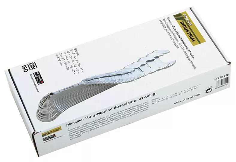 - Kompletní sada očkoplochých klíčů SlimLine obsahuje 21 kusů klíčů velikosti: 6 - 7 - 8 - 9 - 10 - 11 - 12 - 13 - 14 - 15 - 16 -17 - 18 - 19 - 20 - 21 - 22 - 24 - 27 - 30 a 32mm.