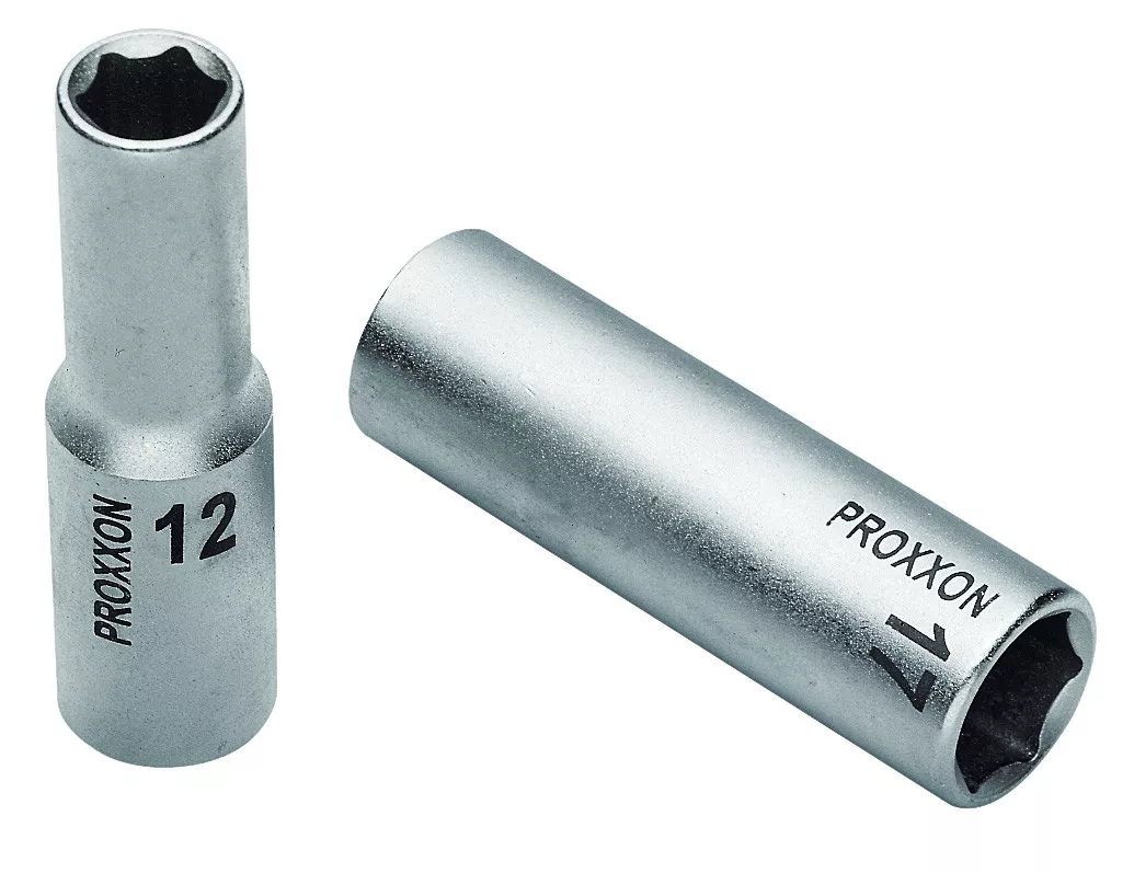 - Díky přesným hlavicím Proxxon je kroutící moment přenášen na boky hlav šroubu a matice, nikoliv na jejich hrany, nedochází k jejich poškození i přes vyvíjení velké síly.