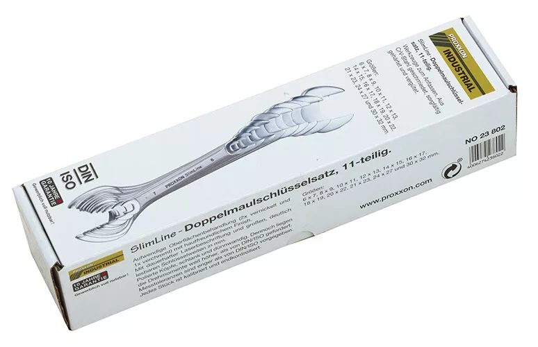 - Kompletní sada stranových plochých klíčů SlimLine obsahuje 11 kusů klíčů velikosti: 6x7, 8x9, 10x11, 12x13, 14x15, 16x17, 18x19, 20x22, 21x23, 24x27 a 30x32mm.