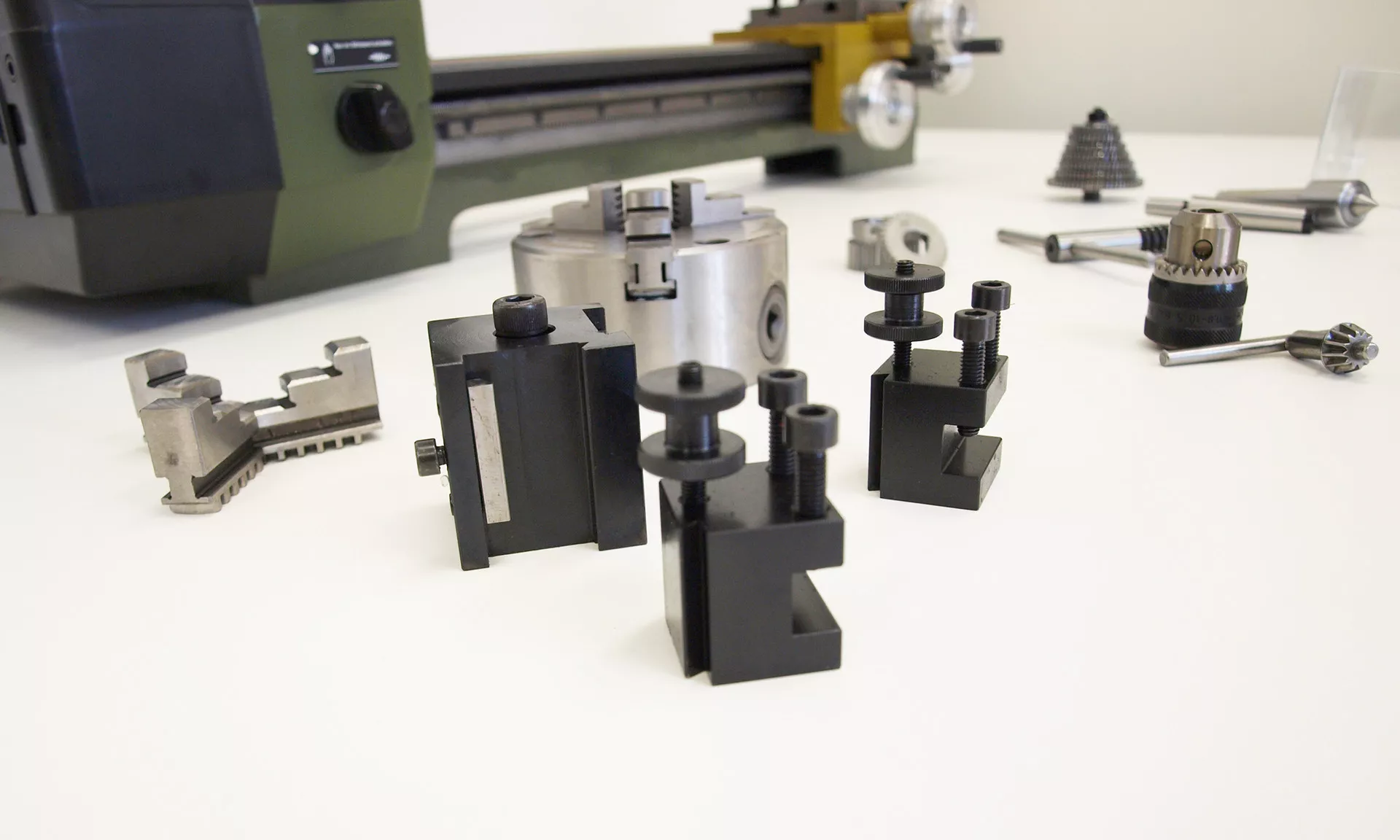 - Součástí dodávky je 3-čelisťové sklíčidlo vč. výměnných čelistí pro vnitřní upnutí; 1ks rychloupínací víceúčelový držák soustružnických nástrojů vč. 2 ks výměnných upínacích držáků; 1ks otočný upínací hrot; 7 ks imbus klíčů pro vnitřní šestihrany; 1ks stranového klíče; 1ks sklíčidlo pro vrták s ozubeným věncem (čep MK 2, rozsah 10mm, objímka B12); 1ks ochranný kryt sklíčidla.
