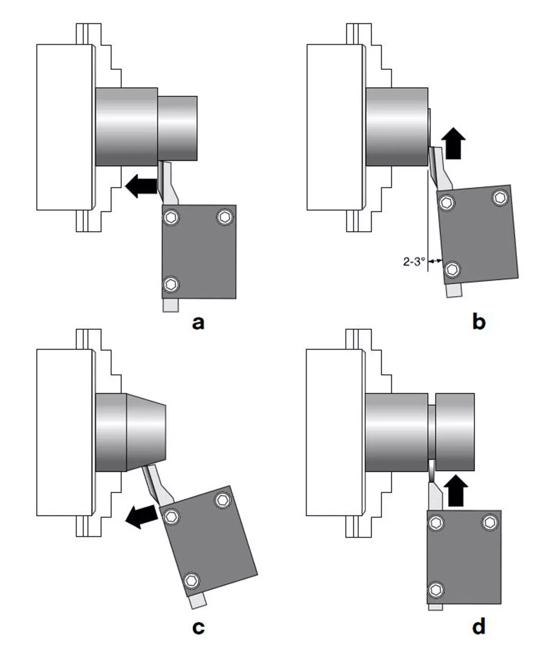 - Nože se vkládajído přiloženého držáku, který je následně upnut do držáku soustružnických nožů na soustruhu PD 230/E, PD 250/E nebo PD 400.