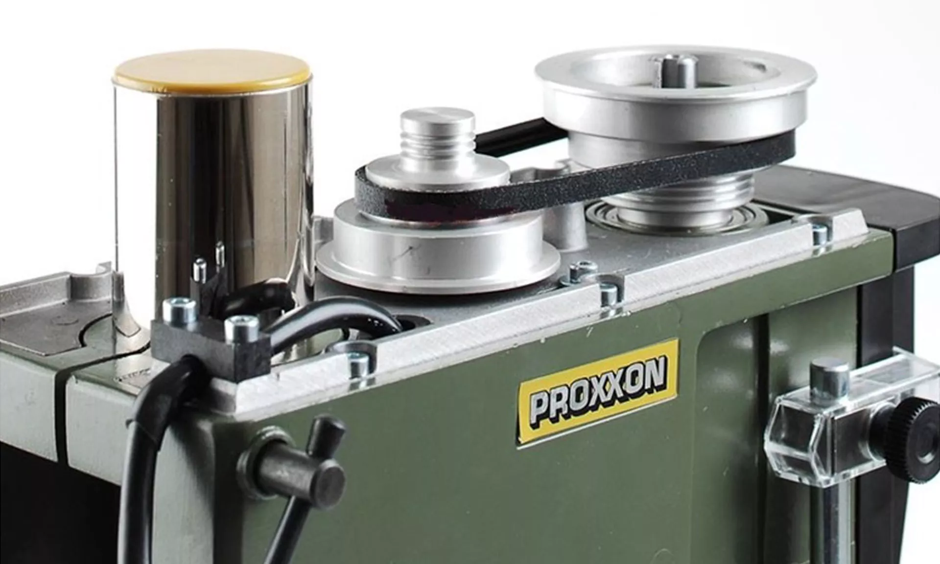 - Pohon vřetene přes trojitou řemenici s Poly-V-řemenem a s 6 násobným krouticím momentem ve spodním rozsahu otáček.
