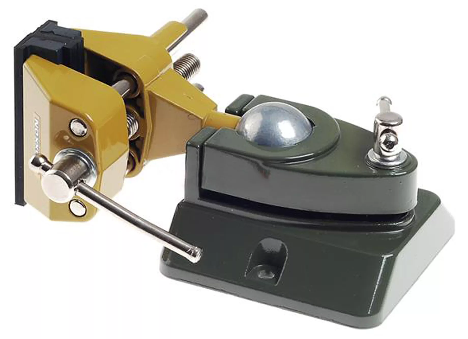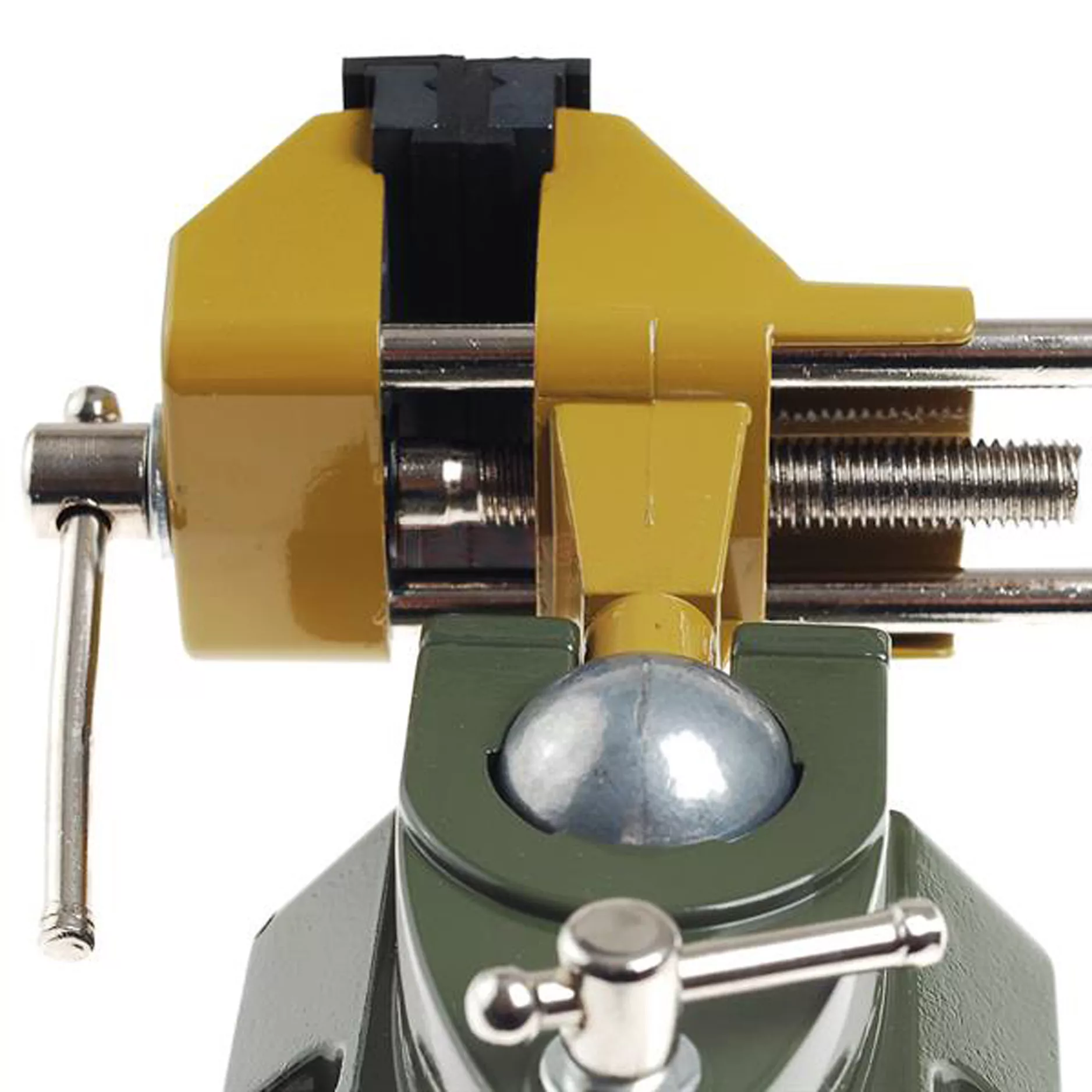 - S kulovým kloubem, který umožňuje otáčení a vyklápění na všechny strany (také dolů). 75 mm čelisti s ochranným potahem pro drobné výrobky.
