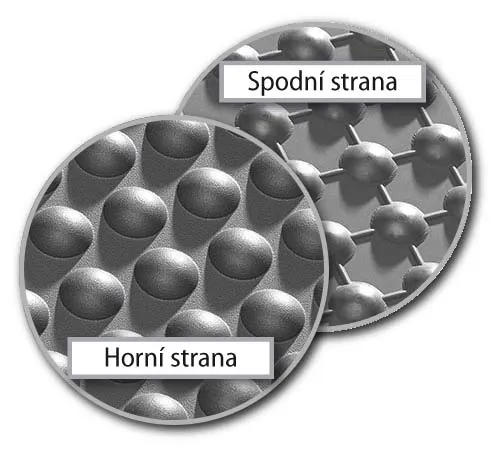 - Spodní strana: nopová, zajišťuje pohodlné stání a zabraňuje skluzu