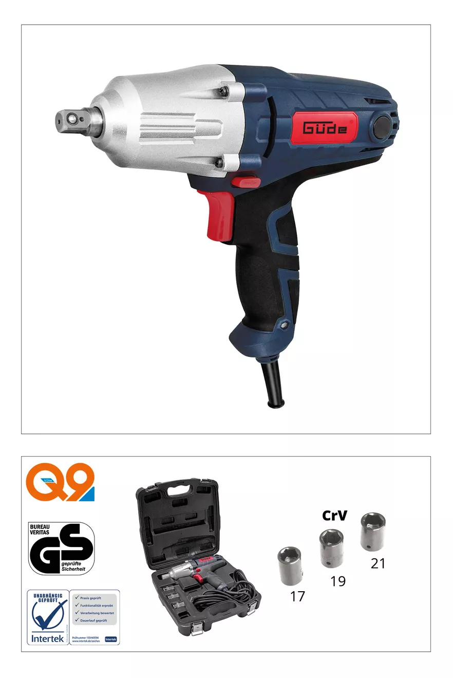 - Motor 400 W, 3 m přípojný elektrický kabel H07RN-F.Konstrukce: vřeteno s upínacím čtyřhranem 1/2'', kovová skříň rázového mechanizmu, ergonomicky tvarovaná rukojeť s protiskluzovými vložkami a indikátorem napětí (-> LED dioda)