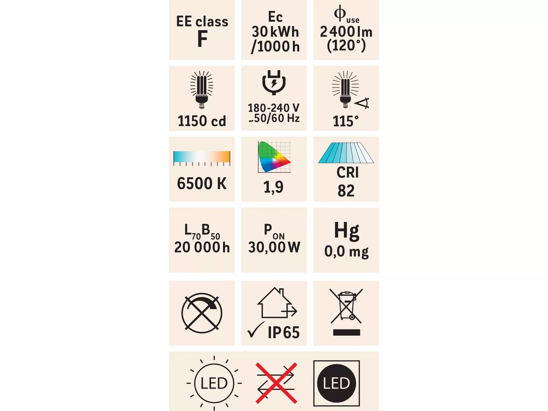 - Krytí: IP65
