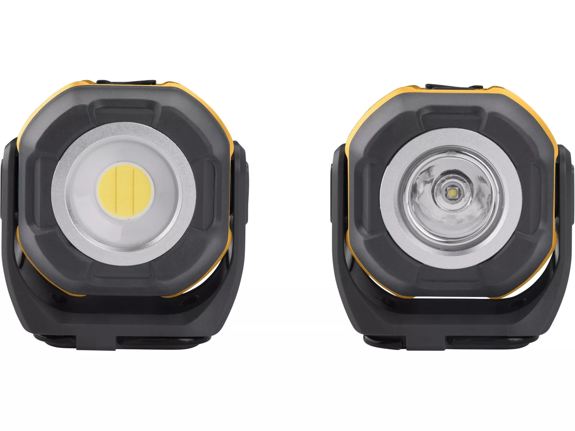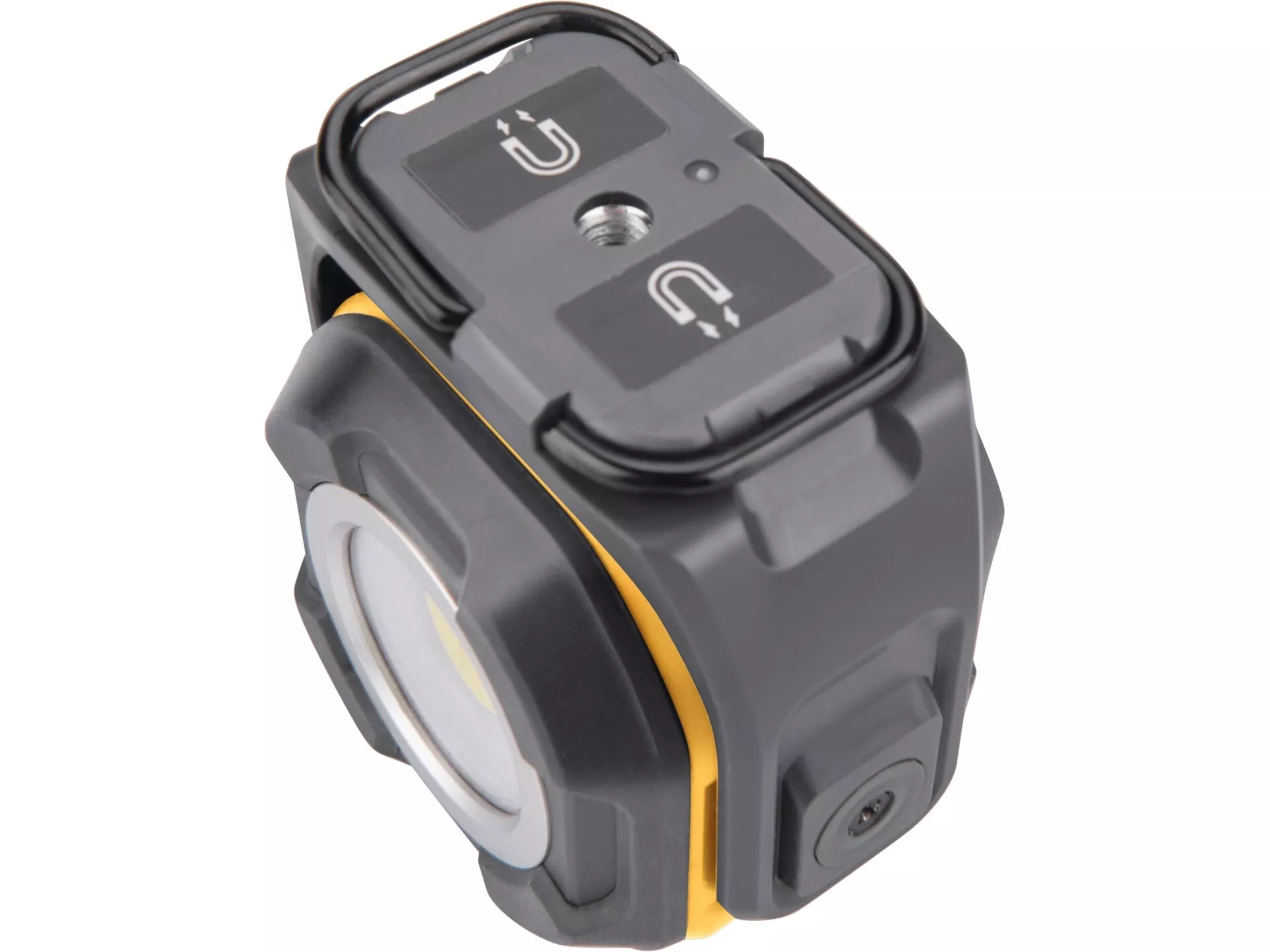 - Malý, ale výkonný reflektor s dvěma typy světla. Na jedné straně je 500lm LED dioda pro svícení do dálky a na druhé 500lm COB dioda pro osvit širokého okolí. Vždy svítí jen jedna dioda. Reflektor lze používat jako přenosný zdroj světla se stojánkem bez napájecího kabelu a bez nutnosti připojení ke zdroji el. proudu, protože zdrojem el. energie je předem nabitý akumulátor. Má několik způsobů upevnění — háček, magnet, 1/4" závit pro stativ mu umožňují flexibilní použití. Pokud dáte reflektor na kovový rám dveří, osvítíte s ním celou místnost nebo je velmi užitečný při venkovních opravách auta. Díky malým rozměrům (8x7x5cm), dobré mechanické odolnosti, odolnosti proti dešti a lze svítilnu mít jako součást výbavy automobilu a jako zdroj světla při práci, opravách, kempování, rybaření, na zahradě apod. S USB kabelem lze reflektor nabíjet ze všech běžných nabíječek, 12V auto USB nabíječek, počítačů, powerbank apod.
