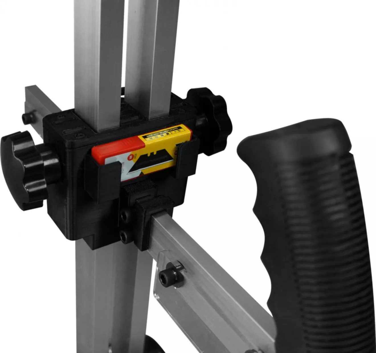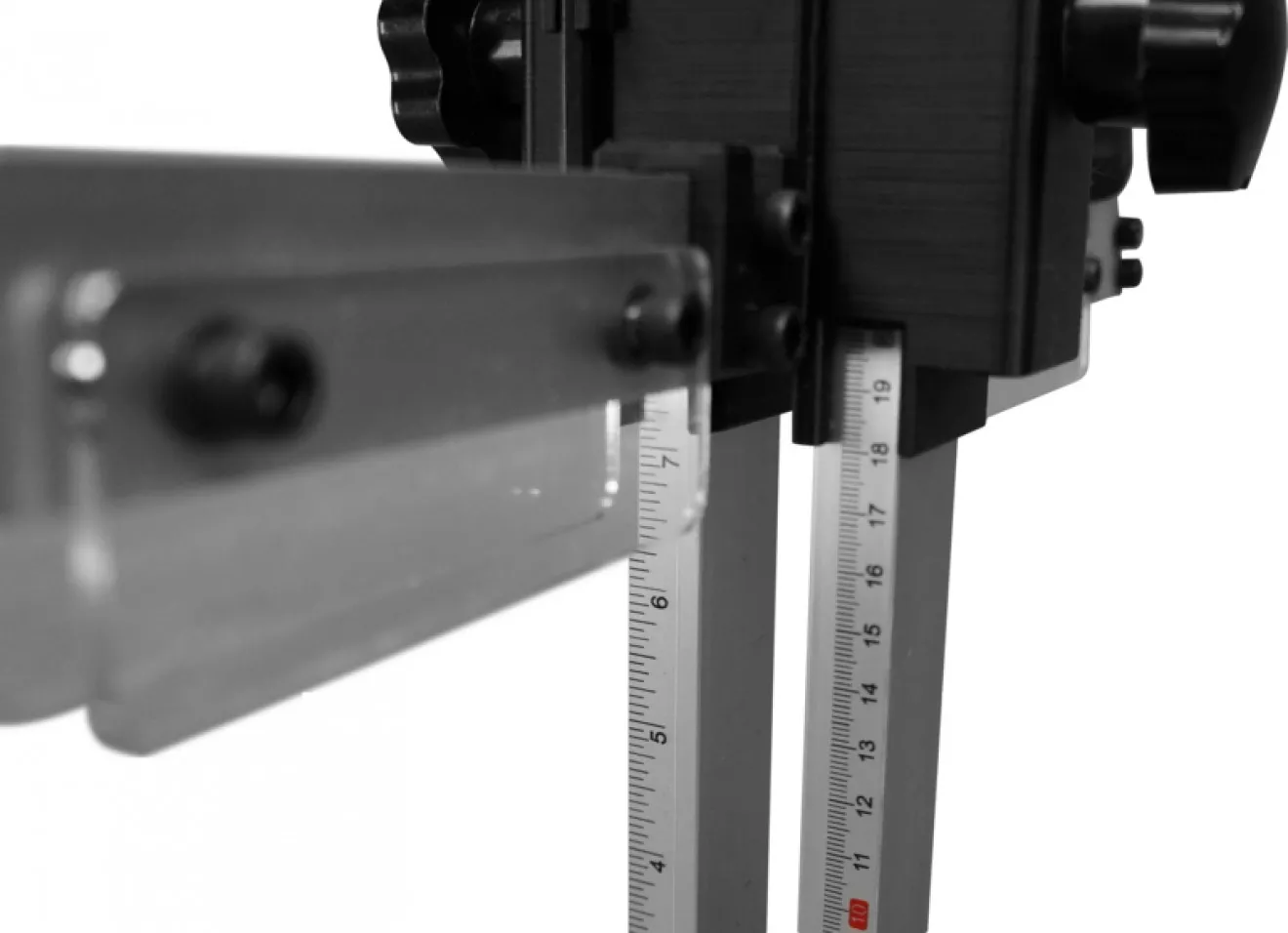 - milimetrové i palcové stupnice), ergonomicky tvarovaná rukojeť, opěrný stojan