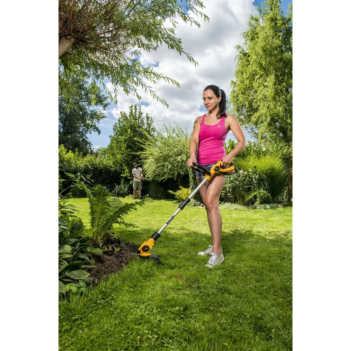 - Sekačka Riwall je poháněna dvěma bateriemi 20 V. Výsledné napětí je tak 40 V a sekačce tak dává dostatek výkonu i ve vyšší trávě.