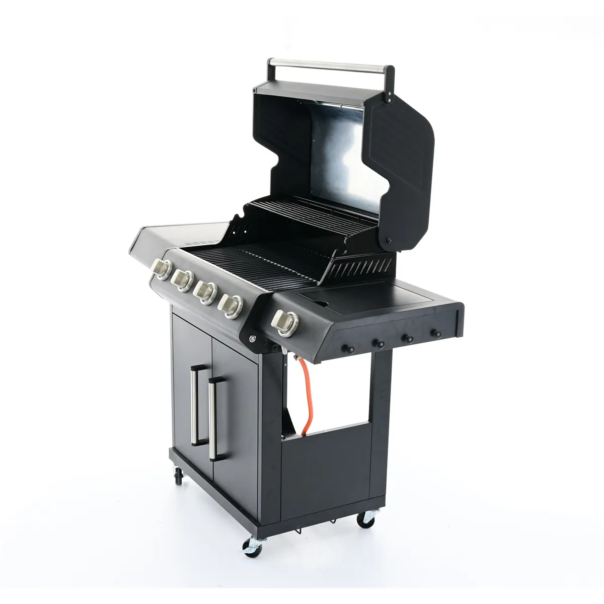 - integrovaný držák na plynovou láhev uvnitř grilu. Jeho velikost (jako jeden z mála na trhu) mu dovolí pojmout i velké 10 kg plynové lahve.