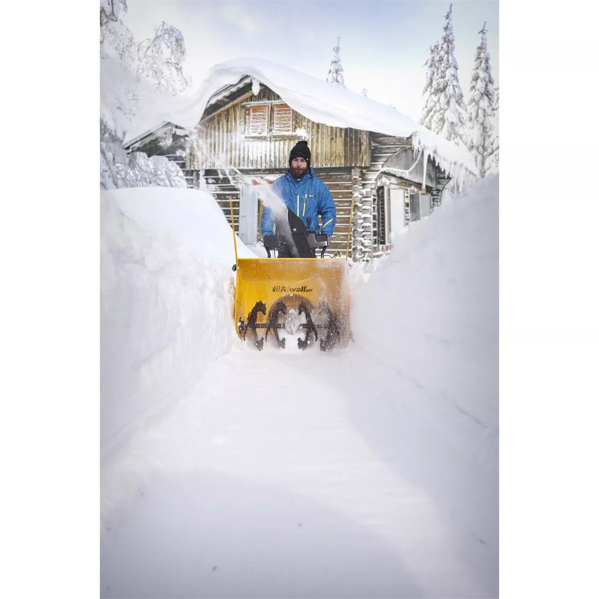 - silný motor, vysoký bunkr, ozubený šnek, výkonný vyhazovací ventilátor a široký plastový výhozový komín dobře zvládnou práci i ve zledovatělém nebo mokrém sněhu