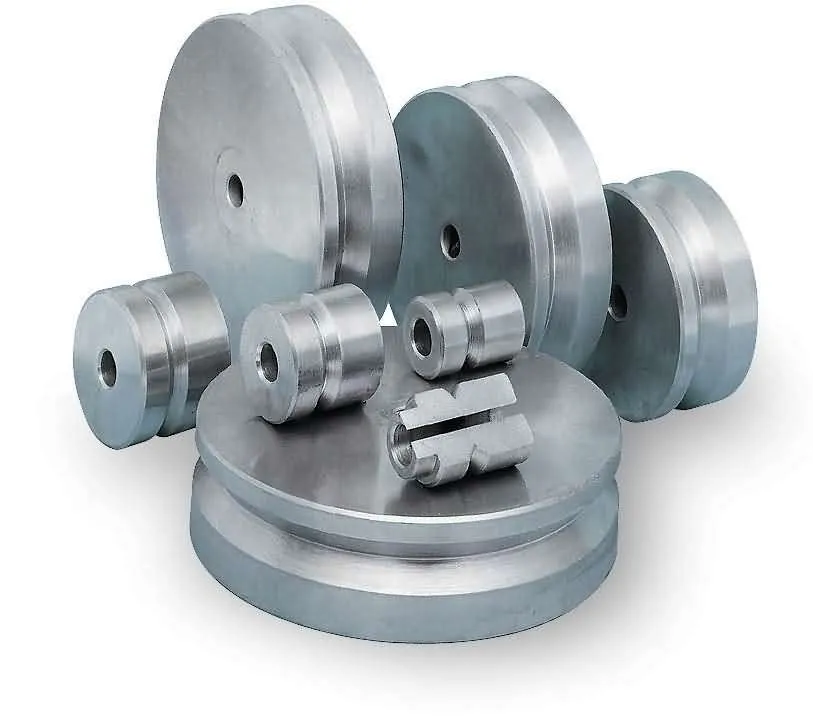 - Tato sada je určena pro práce při uměleckém zámečnictví, ale je vhodná i pro běžné zámečnické práce. Sada se skládá z osmi kladek. Rozšiřuje možnosti ohýbačky o tyto průměry: – ø 110, 150, 175 a 200 mm.