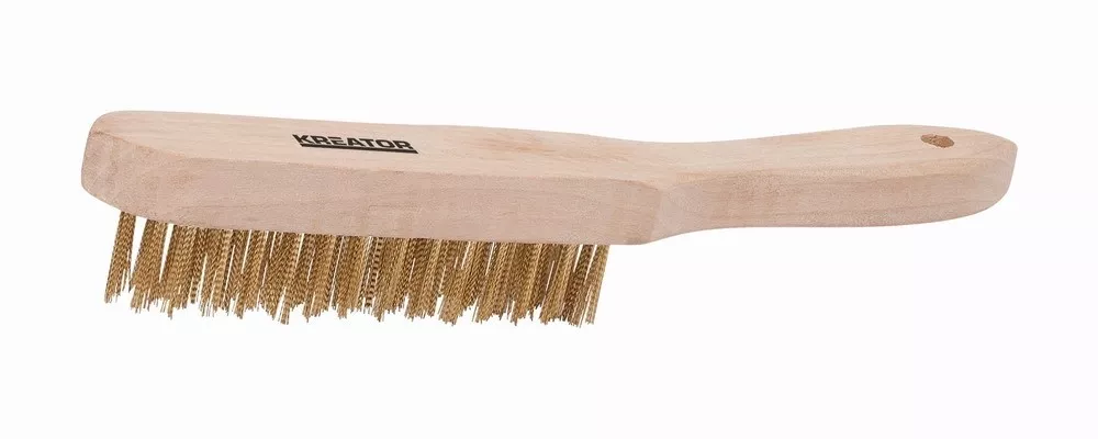Ruční drátěný mosazný kartáč 4 řadý, dřevěný Kreator KRT561003