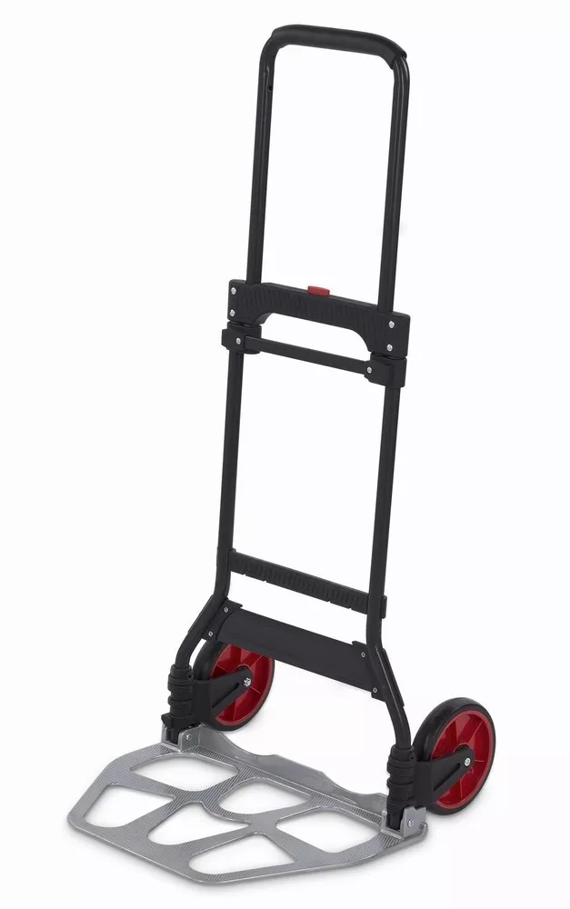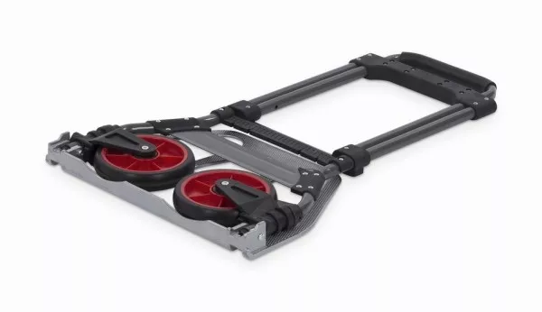 - Doplňující parametr: nosná plocha 27,5x42cm, nosnost 70kg, velikost rozloženého vozíku 98x42x42,5cm, velikost složeného vozíku 70x42x5cm, konstrukce z oceli, hmotnost 4kg,průměr koleček 15cm