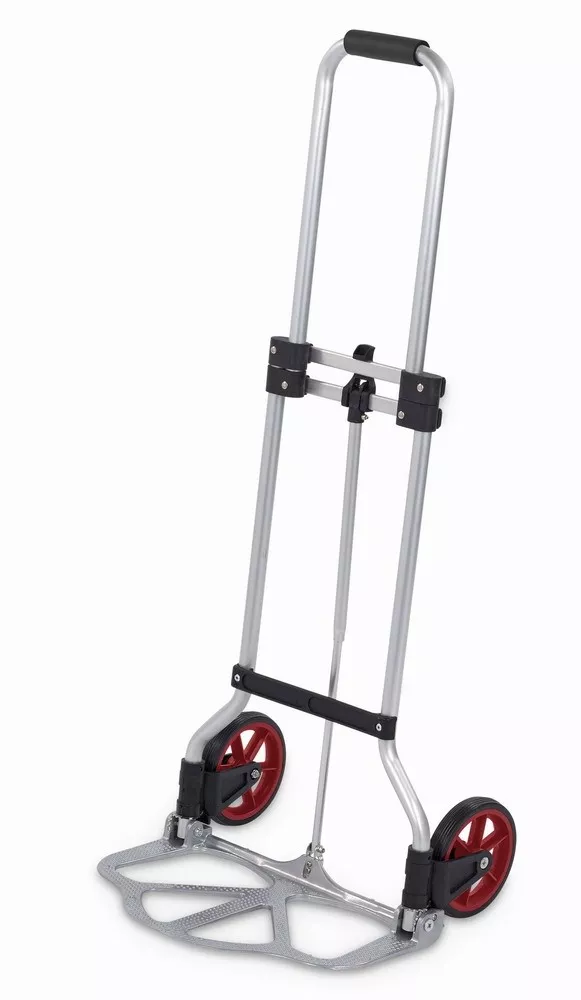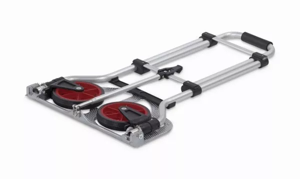 - Doplňující parametr: nosná plocha 27,5x42cm, nosnost 70kg, velikost rozloženého vozíku 98x42x42,5cm, velikost složeného vozíku 70x42x5cm, konstrukce z oceli, hmotnost 4kg,průměr koleček 15cm