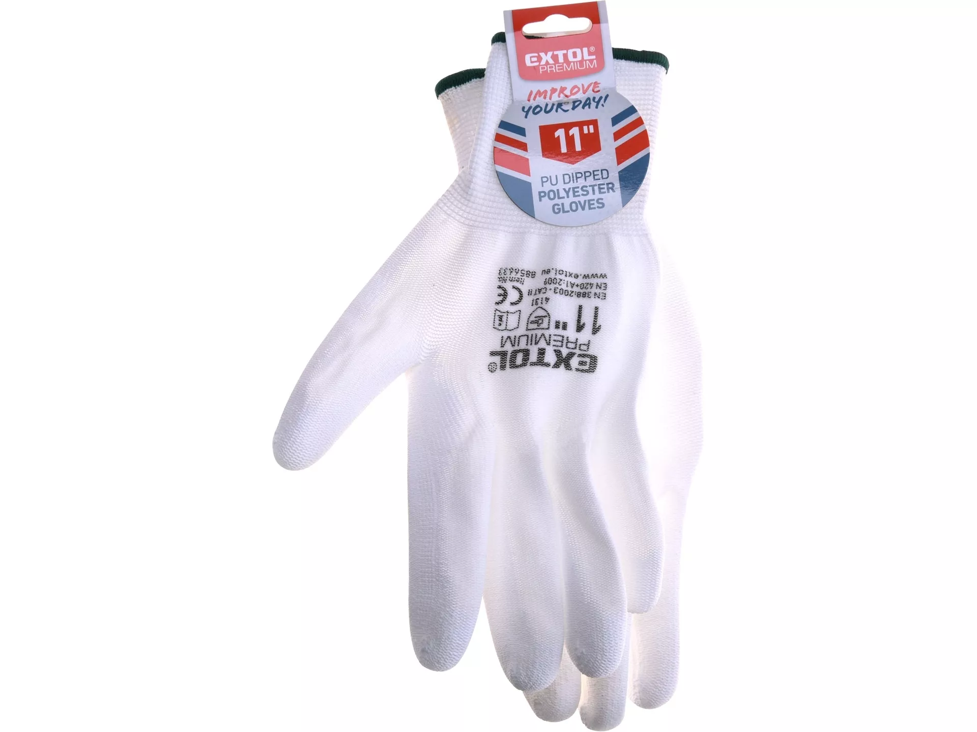 Rukavice z polyesteru polomáčené v pu, bílé, velikost 11" EXTOL PREMIUM 8856633
