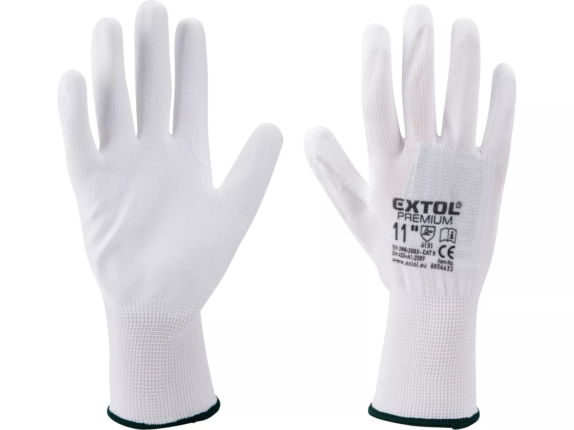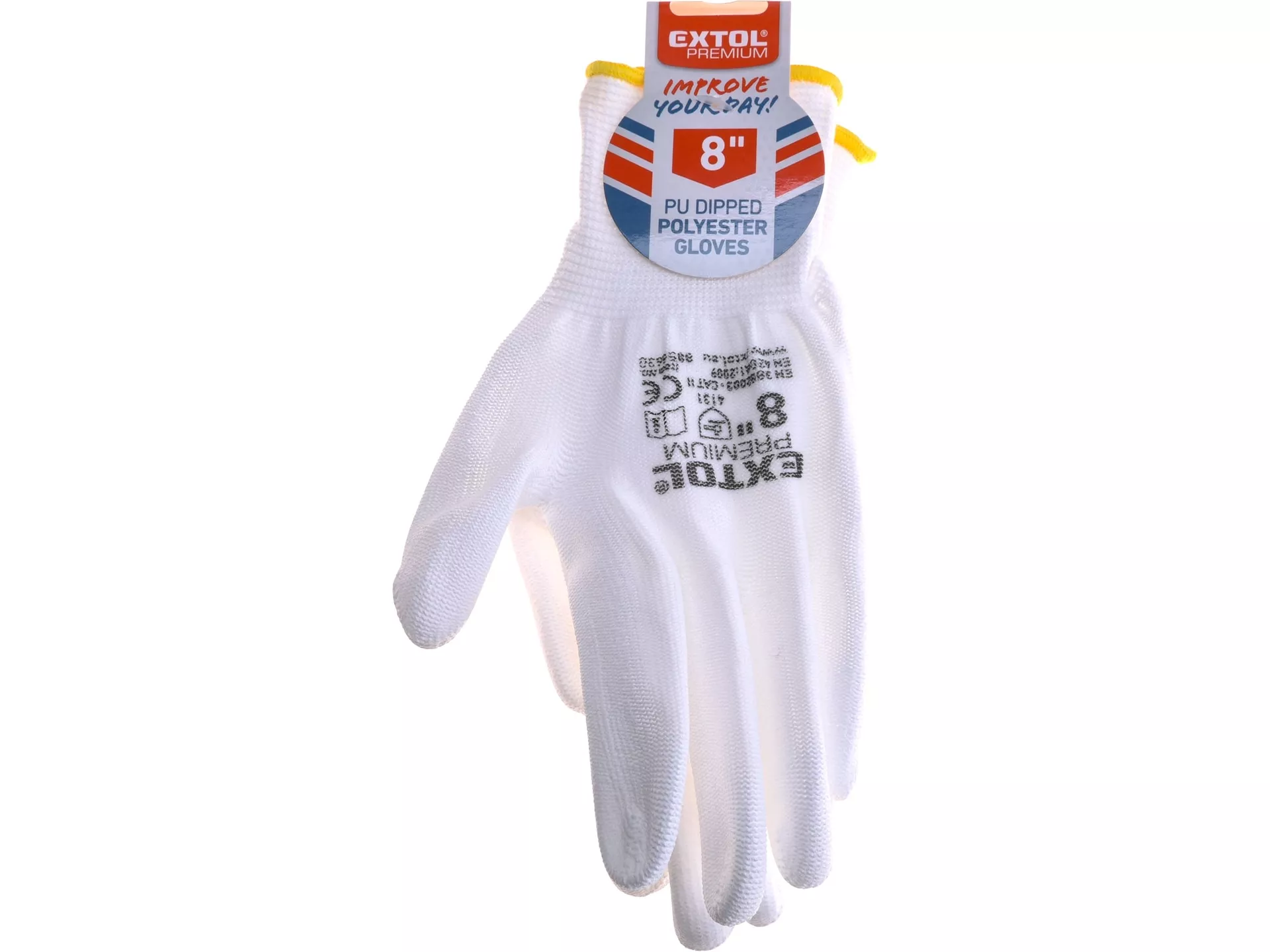 Rukavice z polyesteru polomáčené v pu, bílé, velikost 8" EXTOL PREMIUM 8856630