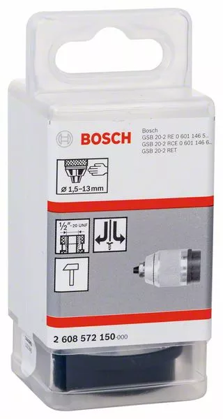 - Rychloupínací sklíčidlo je sklíčidlo systému Bosch s rozpětím upnutí od průměru 1,5 do 13 mm.