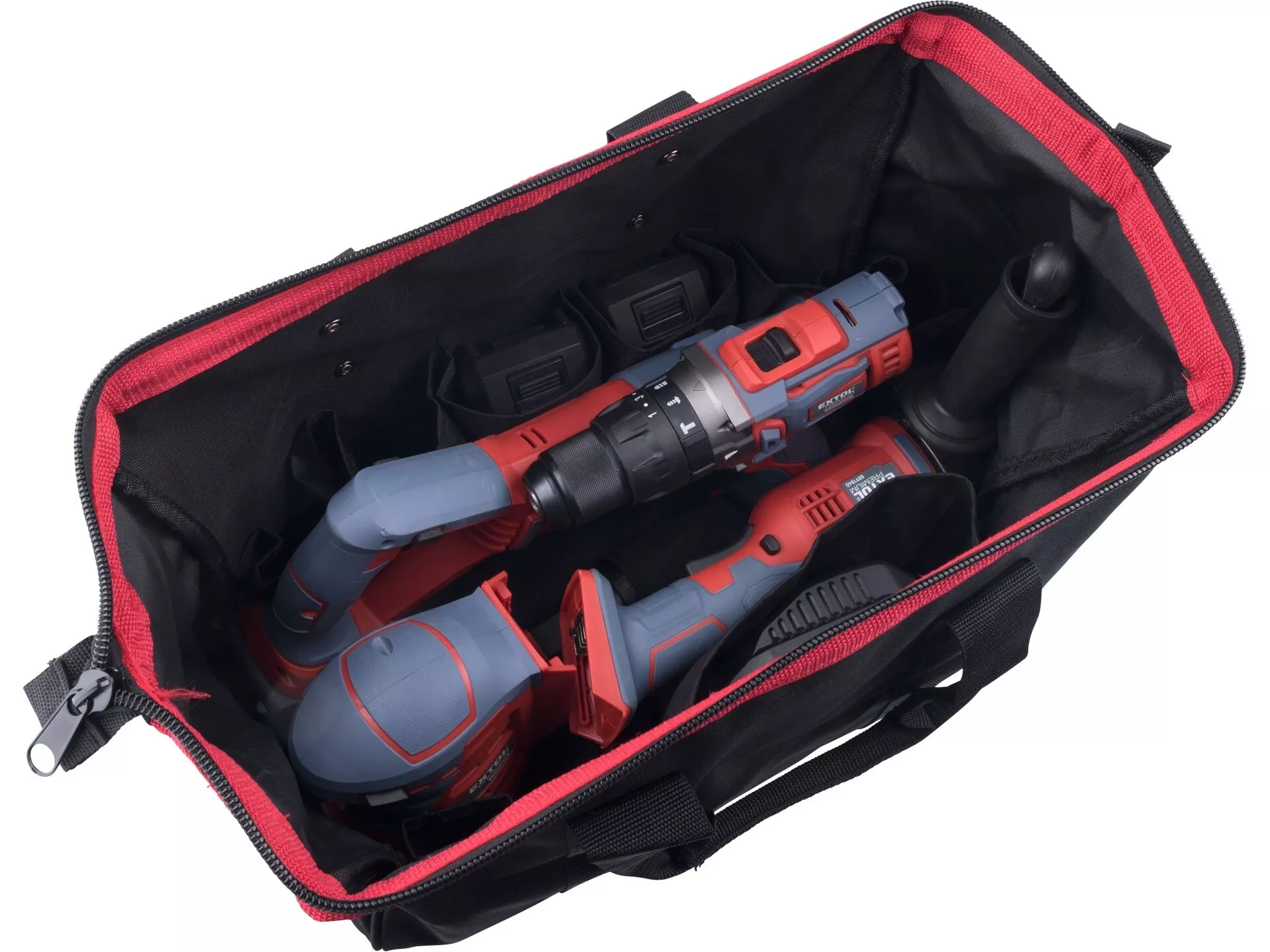 Sada aku nářadí share20v v tašce, 7ks - vrtačka, úhlová bruska, ocaska, excentrická bruska, 2x baterie, nabíječka EXTOL PREMIUM 8898314