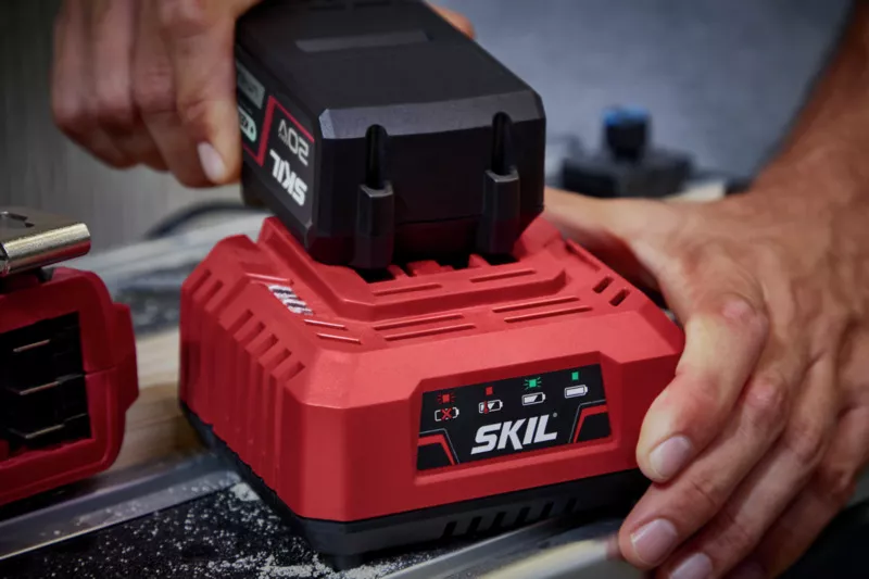 - Nabíječka „20V Max“ (18 V) plně nabije jeden akumulátor za 120 minut.Součástí „Energy Platform“ SKIL: systém flexibilních akumulátorů.