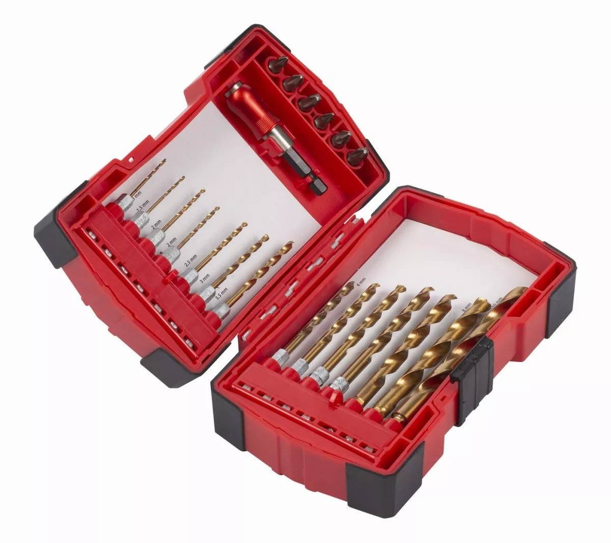 - V této 21dílné sadě vrtáků a šroubovacích bitů najdete nepochybně to správné příslušenství pro všechny vaše vrtačky a šroubováky: PH bity, PZ bity, v různých velikostech, držák bitů s rychlou výměnou, vrtáky do dřeva a kovu.