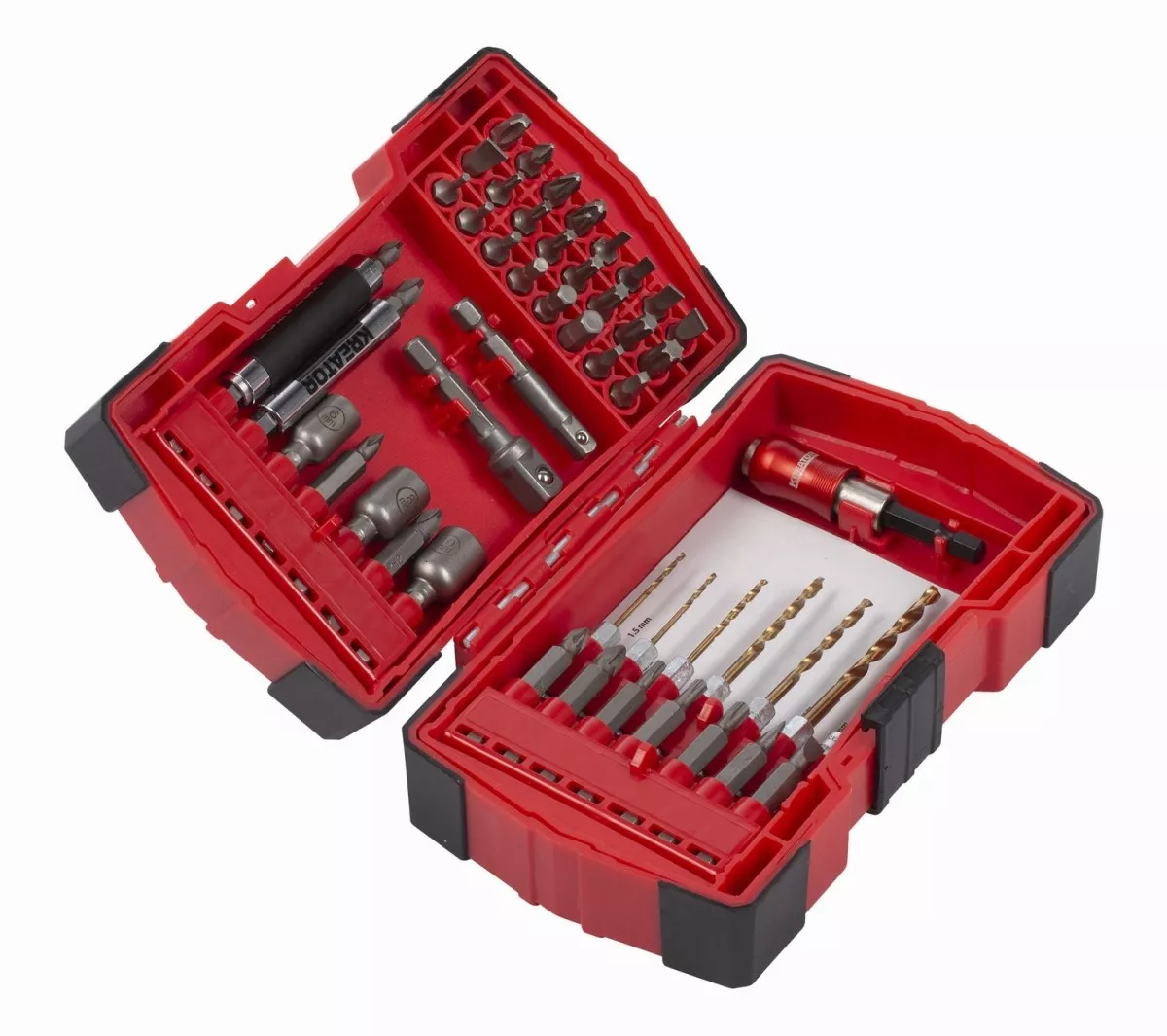 - V této 50dílné sadě vrtáků a šroubovacích bitů najdete nepochybně to správné příslušenství pro všechny vaše vrtačky a šroubováky: PH bity, PZ bity, v různých velikostech, držák bitů s rychlou výměnou, vrtáky do dřeva a kovu nástrčné klíče…..